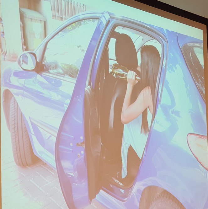 הצעירה התחילה להפעיל את הרכב ורוצה לנהוג לביתה. השוטרים אמרו לה: "את לא יכולה לנהוג. את שיכורה. תתקשרי לאבא שלך שיבוא לקחת אותך". הצעירה אמרה: "בשום פנים ואופן לא, אם אבא שלי ידע שאני שיכורה הוא יהרוג אותי". "ומה את רוצה לעשות?". "לא יודעת, תרשו לי לעבור את הלילה בתחנת המשטרה. מחר אלך הביתה".