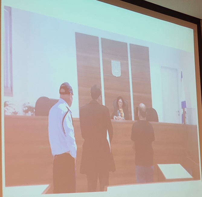 Vinyeron delantre de la djuzgadora. Estavan el loko elegante, Eliyahu vistido sivil i un polis ke los estava akompanyando. La djuzgadora le dize a Eliyahu: "Ay aki demanda de la polisiya ke te mande a obzervasyon psihiatrika porke kijites matar a tu madre i tu ermana"... "No, no, sinyora tyenes yerro"... "si ya se, todos me dizish ke tengo yerro"... "no sinyora la djuzgadora, el es el loko, no yo!"... "si, si, i yo so kantadera de opera... Te esto mandando a la timarana por dos semanas ke te egzaminen. Kreyeme es para tu buendad"... Biriden, el polis akompanyador se esta pishando en el pantalon de la riza i el loko le esta dizyendo a Eliyahu "Vites, afilu la djuzgadora esta dizyendo ke sos psikopato!". En la foto estamoz vyendo a los tres delantre de la djuzgadora.